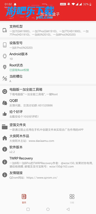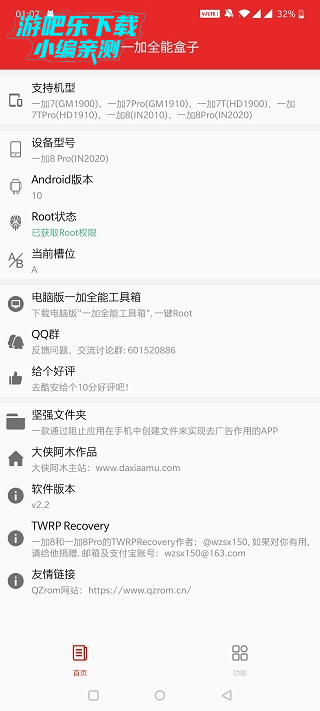 Oplus盒子提供一加手机深度定制功能,包括AB分区识别、应用双开、系统更新管理、高刷模式、Magisk安装与更新等。亮点在于便捷的一键ROOT、玩机问题修复、官方应用修复和内测固件洗白。更有Magisk护盾、LSPosed/EdXposed安装等高级功能,为一加用户带来更自由的玩机体验。