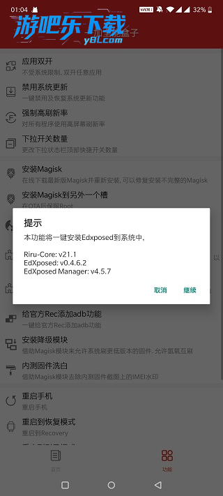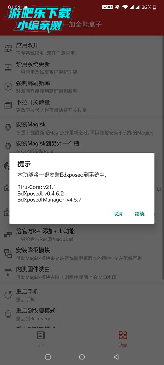 一键安装edxposed运行起来的全部内容,包括riru-core、edxposed框架、edxposed manager