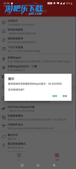 2、lsposed跟更新频繁,对magisk版本要求通常比较高,建议先通过 安装Magisk 功能更新Magisk版本