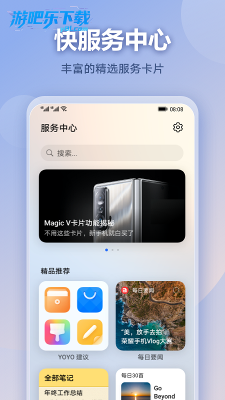 荣耀快服务中心最新版是荣耀手机中的智慧服务卡片市场。核心是为用户提供各类场景化的快捷服务卡片,可添加到桌面或负一屏使用,无需频繁打开独立应用,大幅提升操作效率。需要就来看看吧!