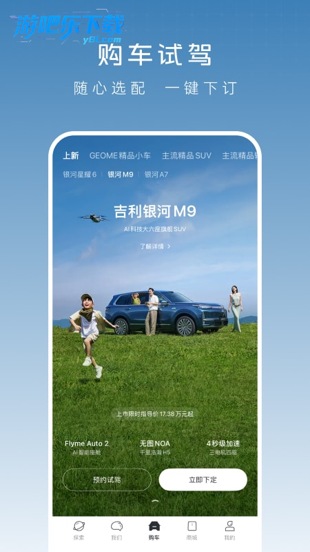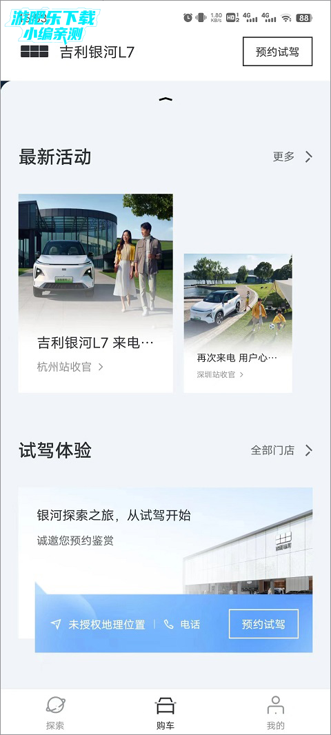 1、在吉利银河App中可以预约L7试驾,查看车辆详情、最新活动。