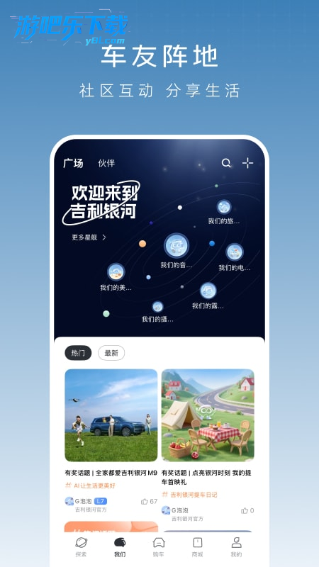 吉利银河APP是吉利汽车旗下中高端新能源系列“吉利银河”的专属服务平台,聚焦用户购车、用车全生命周期需求,整合资讯获取、产品了解、车友互动、车辆控制等核心功能,为用户提供高效、便捷、多元的服务体验,助力用户轻松掌控吉利银河汽车相关的各类服务。
