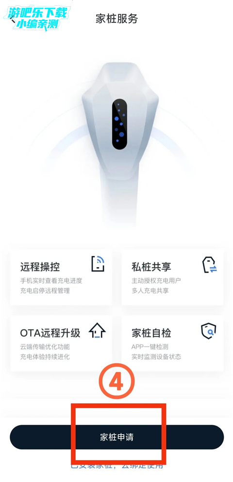 4、若无家桩,先点击【家桩申请】进行充电桩申请。