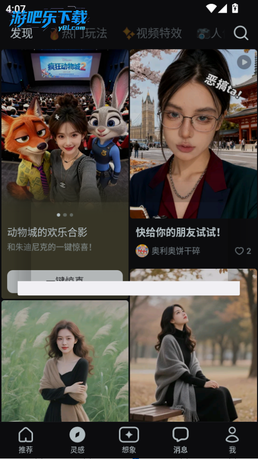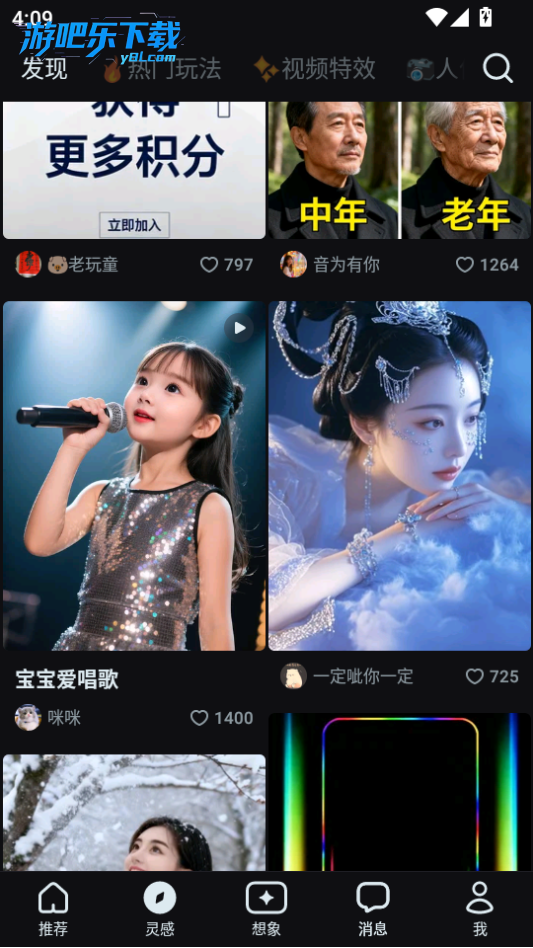 1、APP支持抖音账号登录,登录后可以获取积分,点击灵感板块。