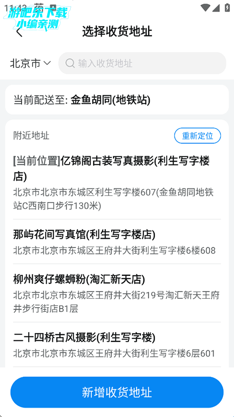 2、搜索定位到您当前所在的位置以确认配送地址,或是新增一个收货地址。