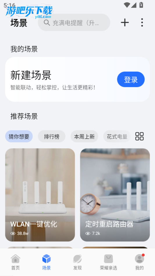 - 荣耀全家桶用户表示这个APP是刚需!路由器管理、家电联动都顺畅,最近加了下班打卡场景,不用手动点真省心,虽版本要求高但升级后正常,值得推荐