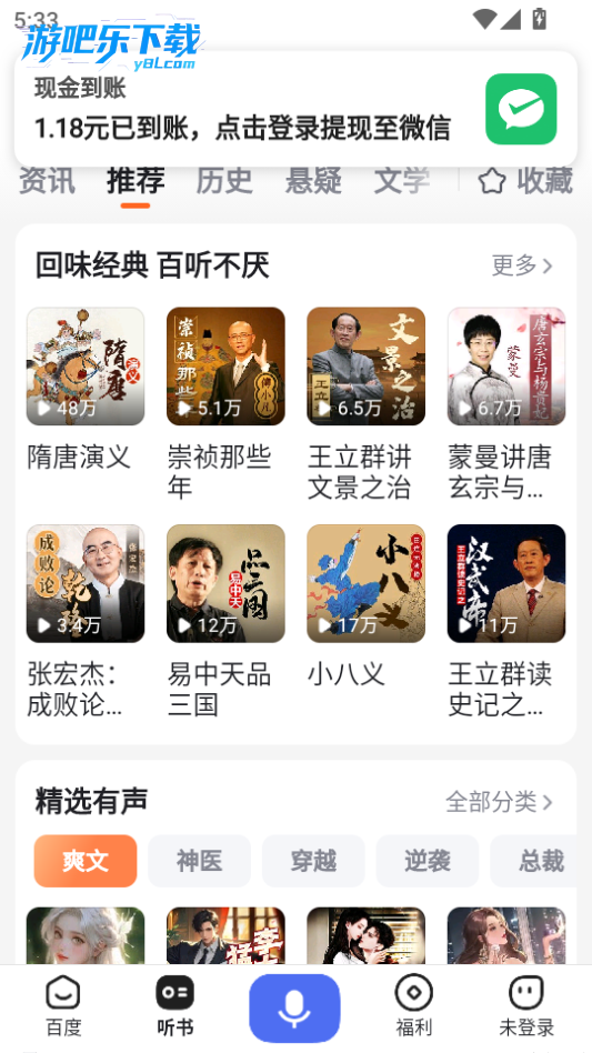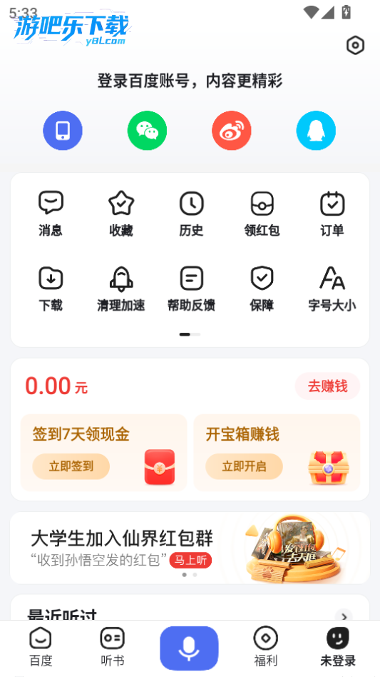 百度畅听版免费下载是一款集音频收听与短视频观看于一体的免费APP。主打全网内容畅听和便捷搜索体验,同时涵盖多元热门内容,还附带诸多福利活动,让你轻松赚钱。感兴趣的朋友可以来试试!
