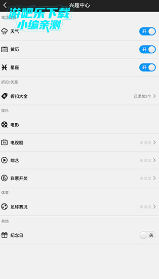 4、并且你还可以手动设置生活提醒页的【显示内容】,其中就包括了折扣/优惠、娱乐、体育等方面。