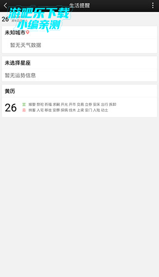 3、点击【生活提醒】之后,我们就能看到更加详细的天气数据、星座运势、黄历等内容。