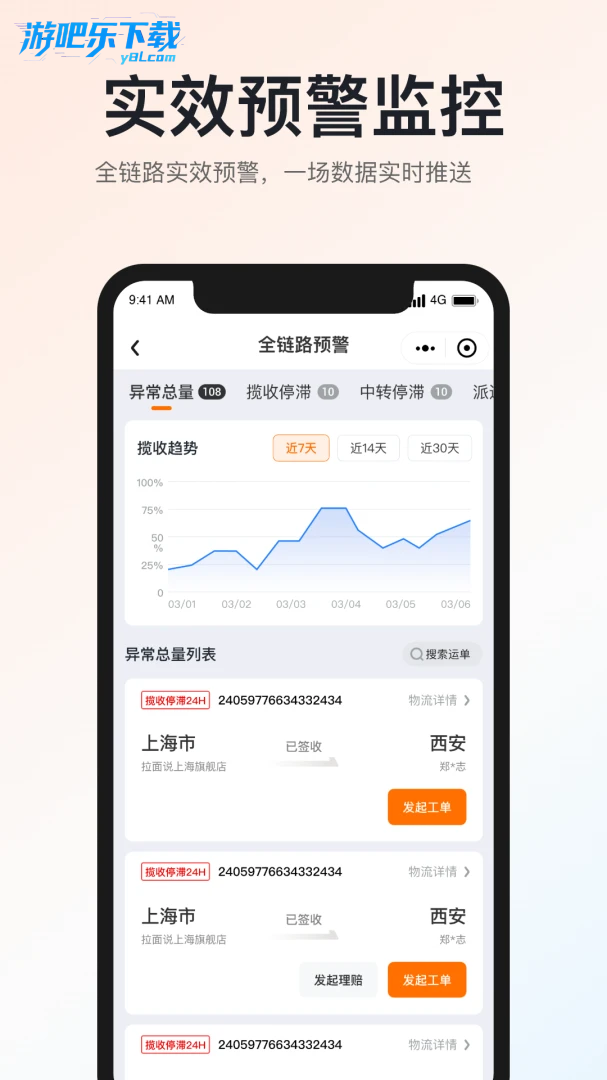 核心亮点功能为物流时效预警,系统基于申通运输网络数据,对超出正常运输时效的包裹自动标记并推送预警信息,包括“中转超时”“派送延迟”等异常类型。商家可及时掌握风险包裹动态,主动与快递网点或消费者沟通,提前化解售后纠纷,保障店铺服务评分,尤其适配大促期间订单量激增的物流管理需求。