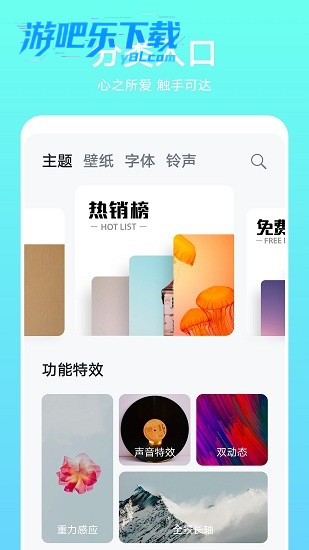 进入华为主题动态引擎软件,有各种主题、壁纸、铃声推送