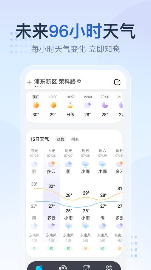 3、极端天气实时预警:第一时间推送暴雨、寒潮、大风、高温等官方红色/橙色预警,保障安全。