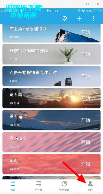 1、在本页面下载并打开番茄todo,点击首页底部导航栏的“我的”。