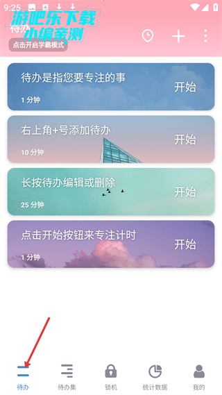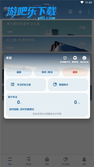 1、待办板块可添加不同时长的待办任务,能开启学霸模式,助力管理待办事项,高效完成任务,还有编辑删除等操作说明。