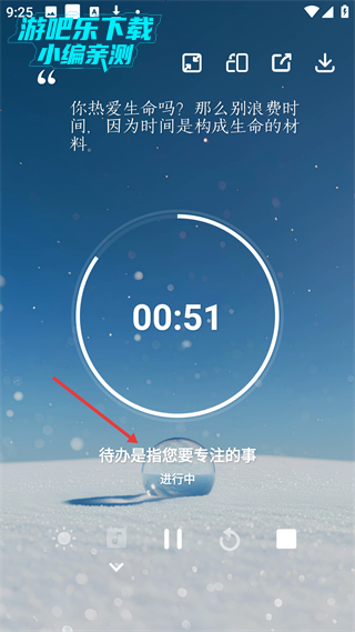 2、待办专注板块有计时功能,搭配你热爱生命吗的励志语录,可专注处理待办事项,界面直观,助力提升时间利用效率。