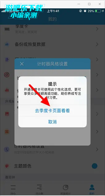 5、翻页时钟(全新风格)提示需要开通季度卡才可以用哦,点击“去季度卡页面看看”。