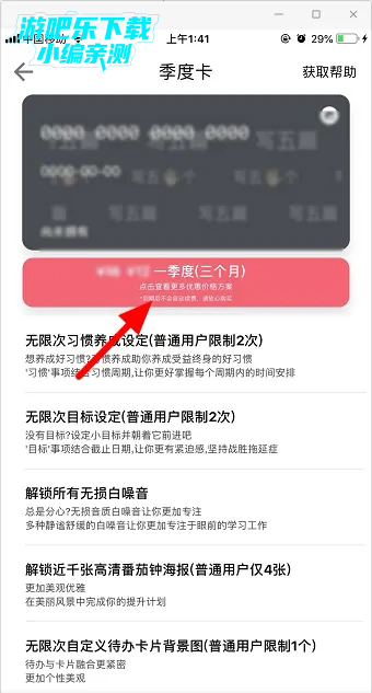 6、点击“红色方框”开通季度卡即可。