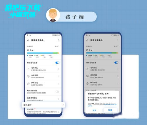 1、在孩子使用的设备中找到健康使用手机,选择孩子使用,设置健康使用手机密码后进入,再选择家长助手,就进入到二维码界面啦。