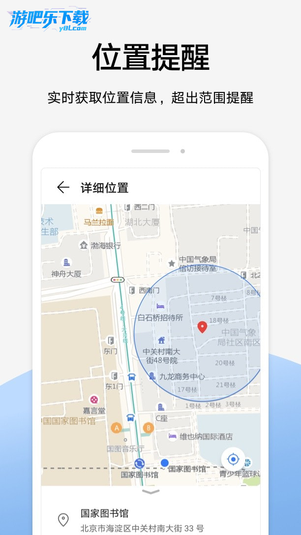 2、地图缩放,用户在可以自由缩放地图的大小,可以更好的了解到自己孩子的情况。