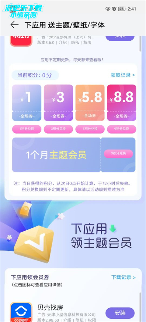 1、在首页输入免费领主题,然后就有下应用得积分的活动。