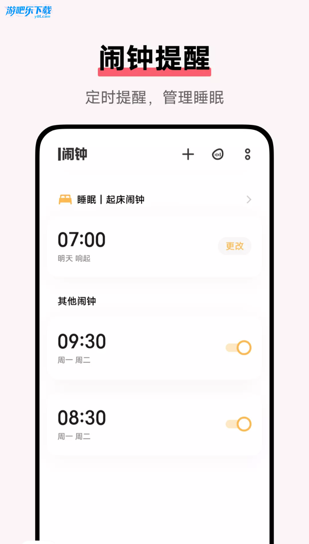 内置睡眠周期管理功能,贴合 90 分钟睡眠循环规律,帮助用户在浅睡眠阶段起床,提升晨起精神状态。提供多种个性化闹铃选择,支持本地音乐、录音自定义铃声,满足不同用户偏好。支持全球时区查询与转换,可添加多个城市时钟,实时显示多时区时间。适配出差、跨境沟通等场景,长按可设置主要时区,桌面组件优先展示,对比时差更便捷。