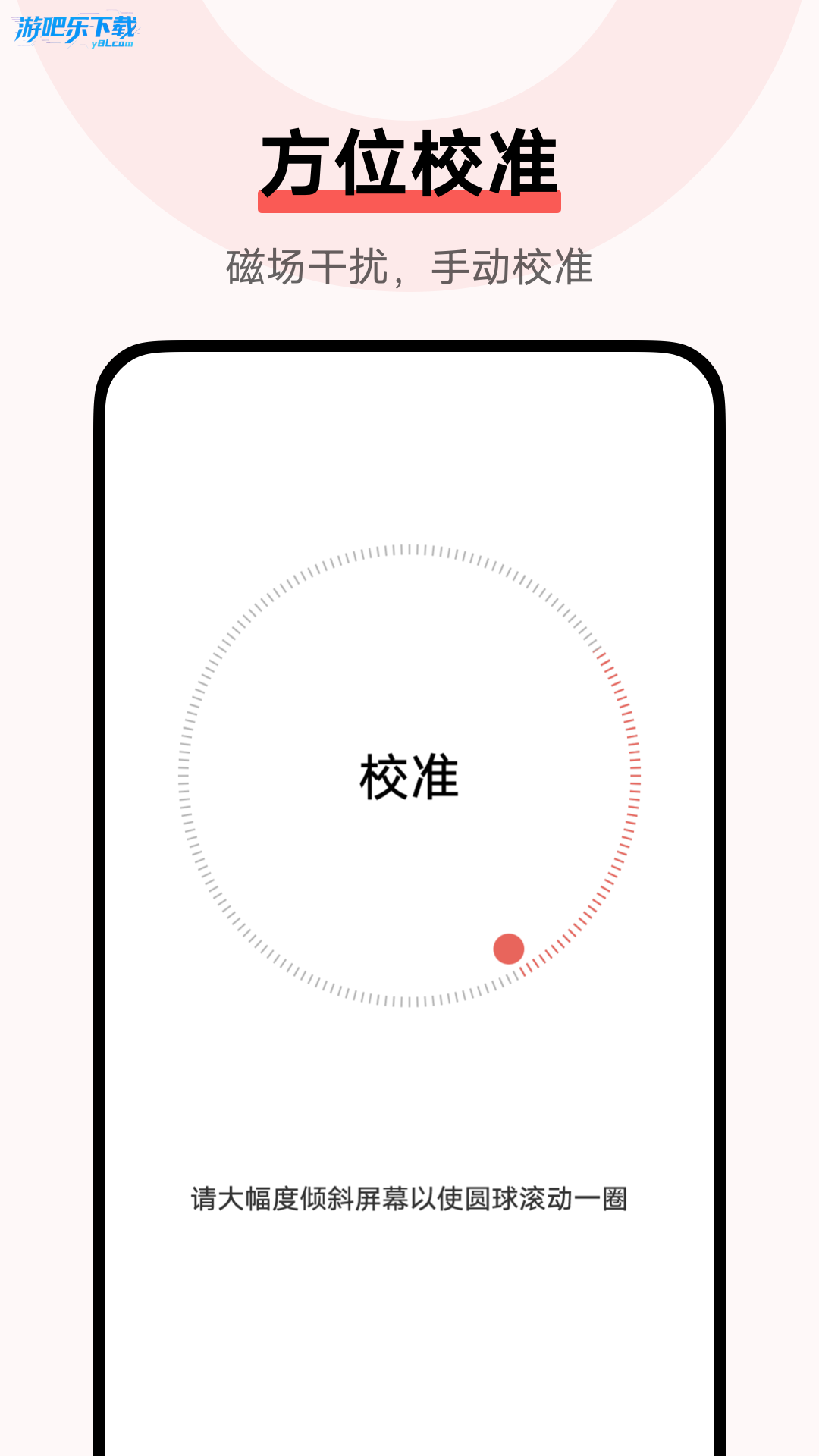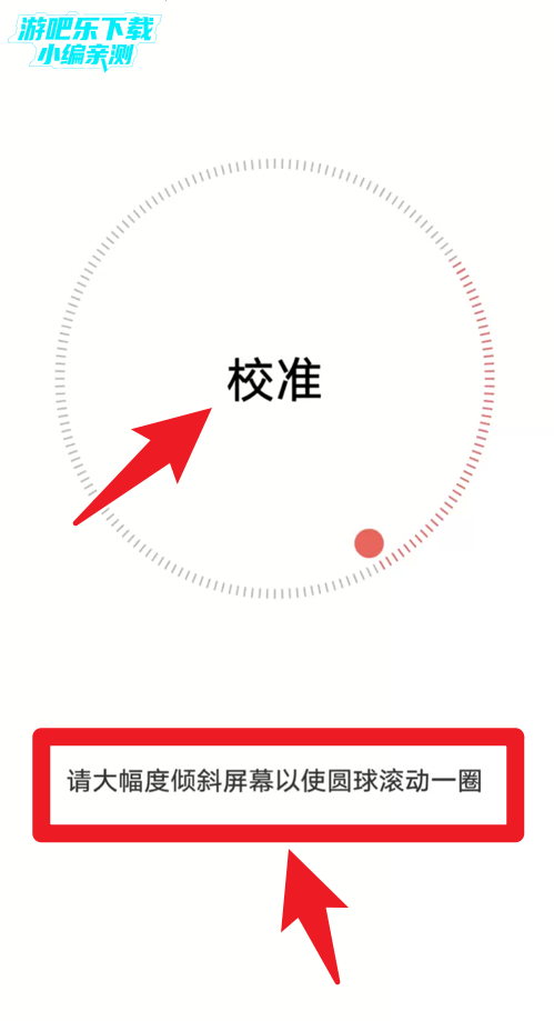 4、当发现方向不准时,可通过校准功能,大幅度倾斜屏幕让圆球滚动一圈,从而恢复精确度。
