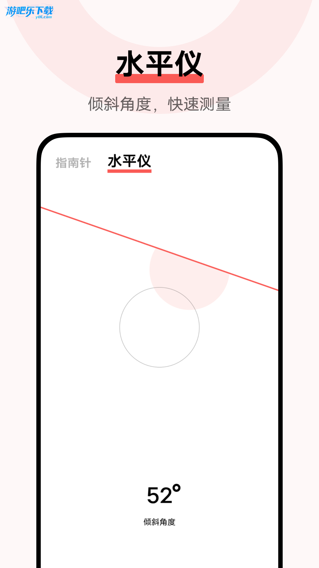 3、切换到水平仪页面后,用户能够实时监测手机的倾斜角度,方便进行家具摆放或水平测量。