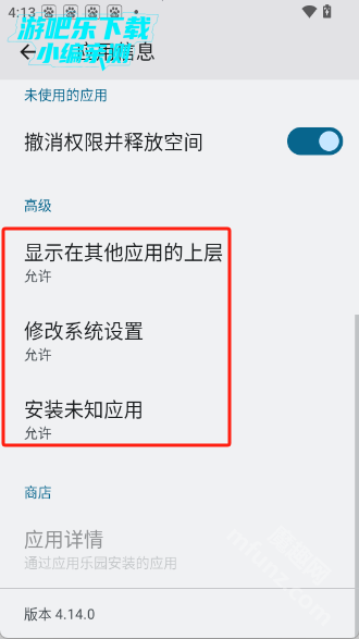 将显示在其他应用的上层、修改系统设置以及安装未知应用全部改为允许