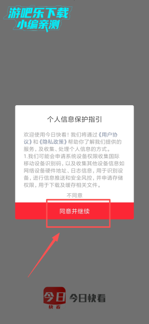 1、在今日快看APP中点击"同意并继续",进入程序主界面。