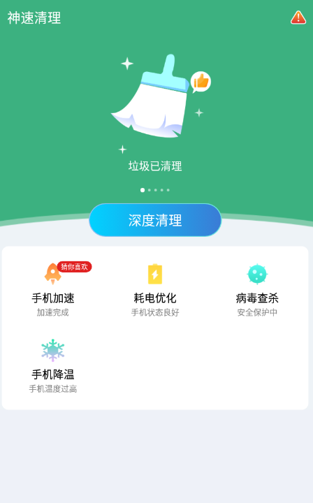 神速清理免费版,一键清理垃圾,专业杀毒引擎守护手机安全。智能加速,告别卡顿,更有专项清理微信、碎片、安装包等功能,深度释放空间。快速降温省电,延长手机续航。优化UI,修复Bug,体验更流畅!