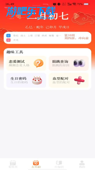命理相关辅助:部分版本包含每日五行、冲煞、胎神方位、星宿值日等信息,适配关注传统命理文化的用户;部分还支持生肖运势、星座运势查询,结合黄历给出当日运势建议。