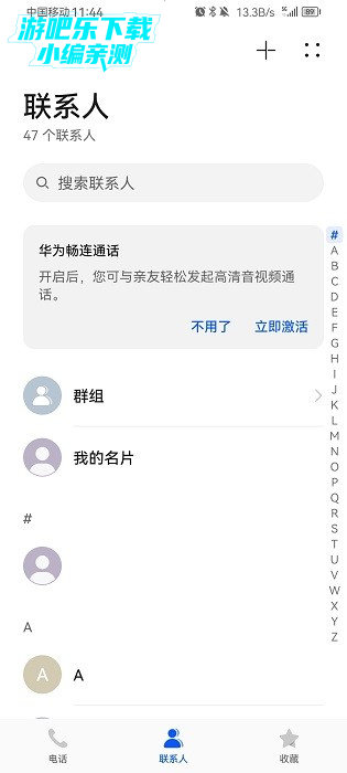 在通话记录或拨号界面,点击顶部的“联系人”选项卡,即可切换至联系人列表。