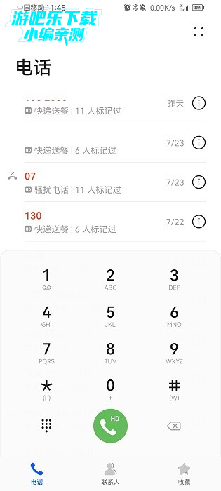 3、电话版块里还可以看到最近的电话列表信息;