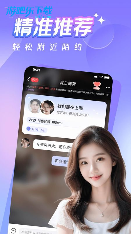 专为想要寻找甜蜜爱情或友谊的人们设计。其流畅的用户体验和精准的匹配系统,使得交友过程变得轻松而高效。实名认证功能则增强了用户之间的信任感,让每一次交流都更加安全可靠。总体而言,同城蜜约会是一款值得推荐的交友软件,能够帮助用户在喧嚣的生活中找到那个特别的人,开启恋爱之旅。