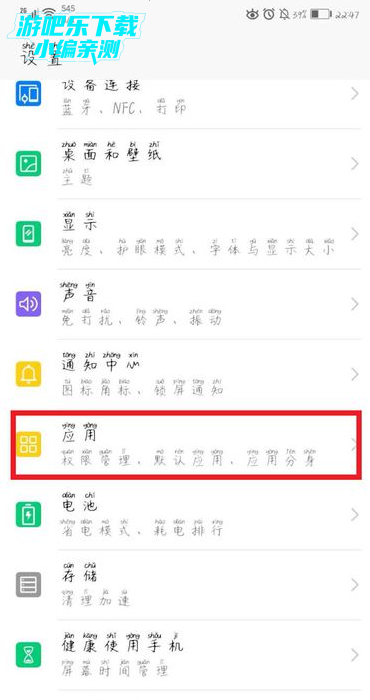 2、然后,在打开的设置的主界面点击应用的选项。
