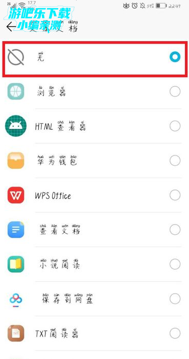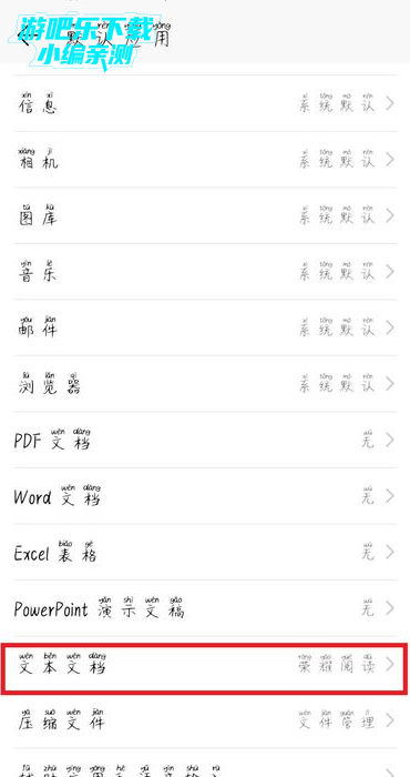 4、之后,在默认应用的界面点击文本文档。