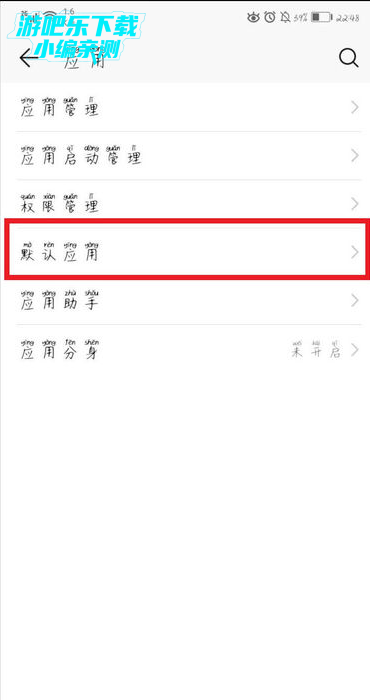 3、接着,在应用的界面点击打开默认应用。