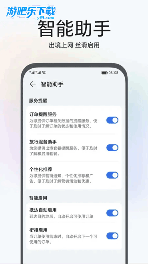 启用套餐时,数据或漫游开关将自动设置,无需您手动开启。