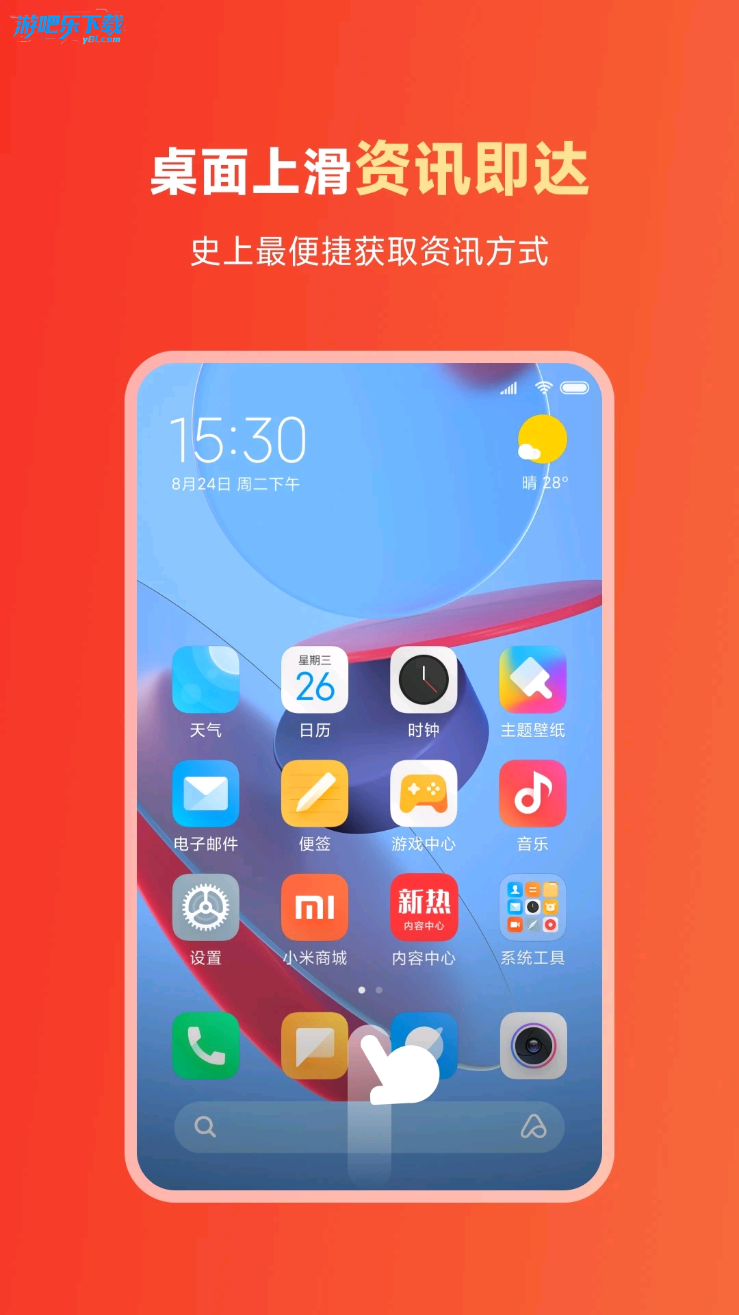 小米内容中心是小米手机桌面级内容聚合 APP,除负一屏外任意桌面上滑即呼出,一站式汇聚新闻、视频等多渠道内容,无需切换应用,高效获取精彩资讯。