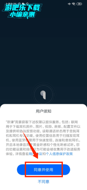 1、在用户须知窗口点击"同意并使用",即可进入欢律应用主界面。