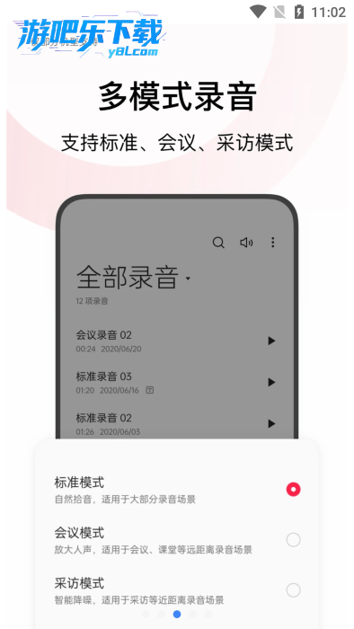 1. 打开oppo手机录音软件,在主页上方选择要使用的场景模式,如【会议】。