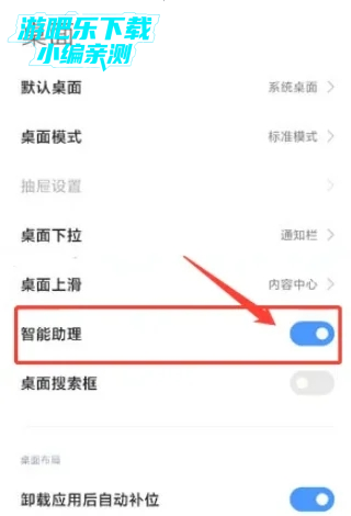 3、最后,在桌面页面中,将智能助理右侧的开关,点击开启即可。
