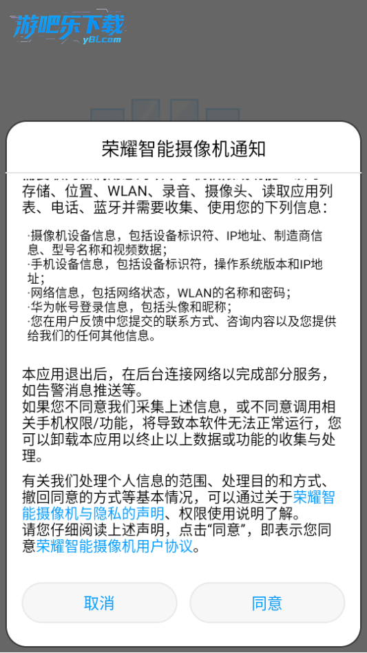 下载进入荣耀智能摄像机软件,点击同意