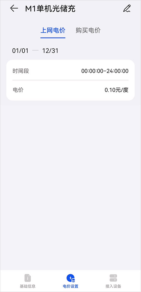 3、点击右上角的“书写”图标,根据界面提示分别配置“上网电价”和“购买电价”。