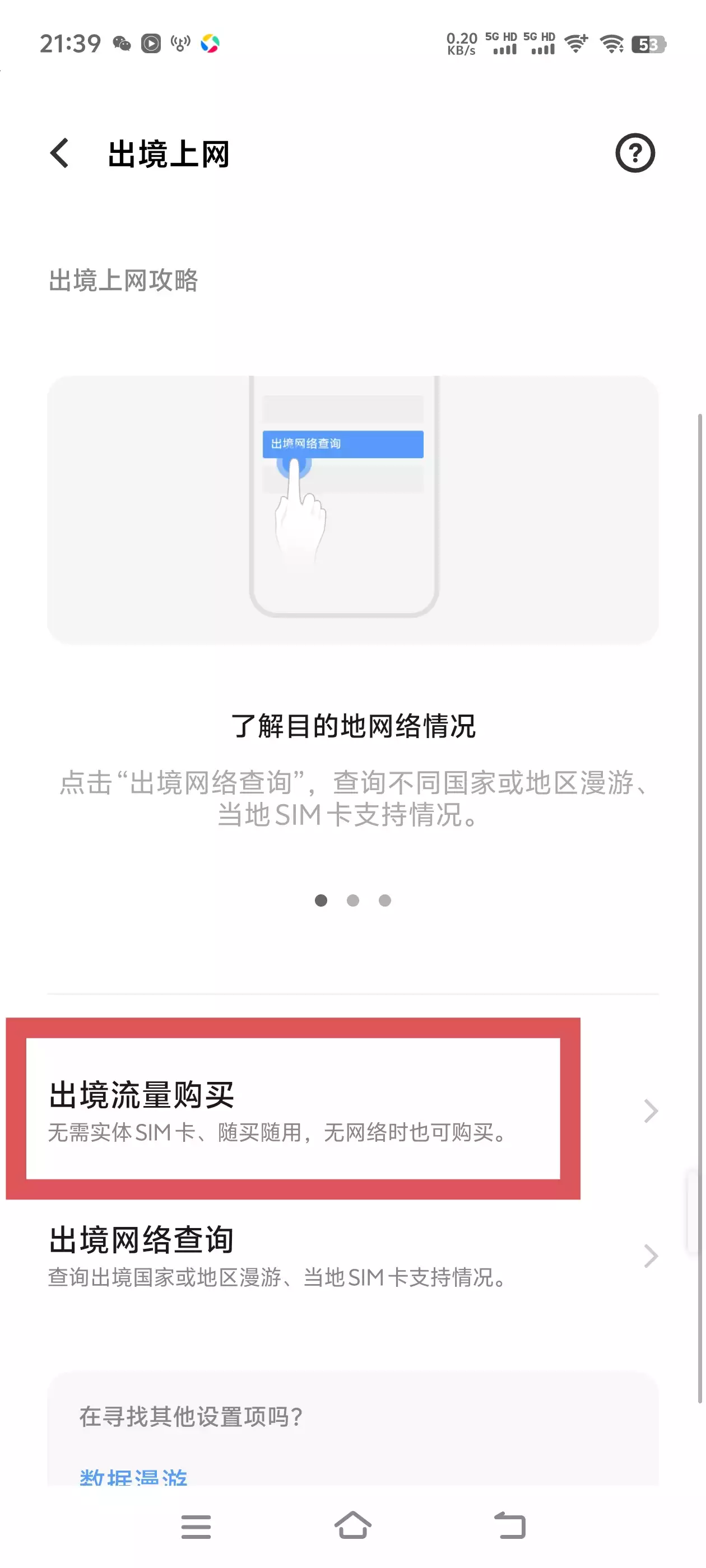 3.找到出境流量购买,并点击