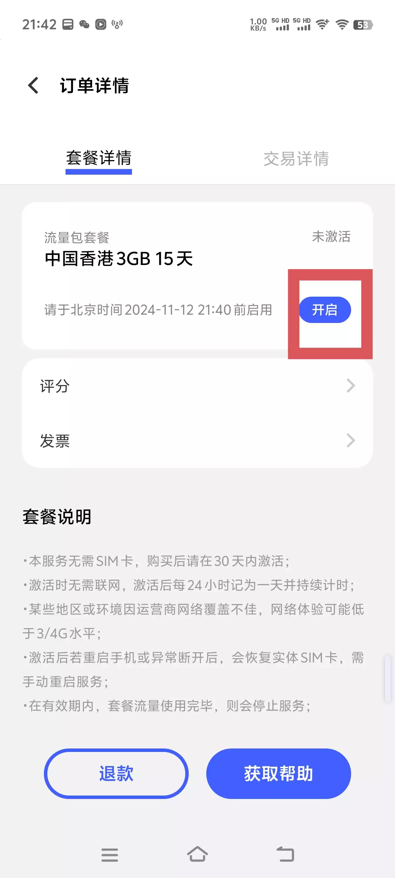 6.支付完成后,当你抵达当地后,点击启用即可