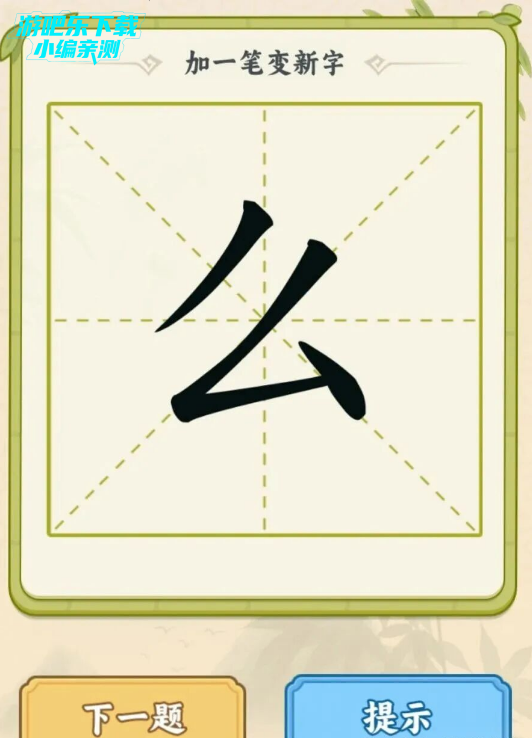 1、本游戏玩法很简单。比如屏幕上显示一个“么”字,你需要给它加一笔,让它变成另外一个字。
