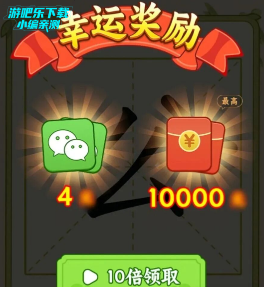 2、答对之后,不光能学到新知识,有时还会收到红包奖励哦。想拿到红包的话,你可以选择点“10倍领取”,看一段广告视频,就能拿到更大额的奖励。