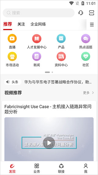 1、在发现页面中,了解各种相关功能,如产品、直播、人才发展中心等等。