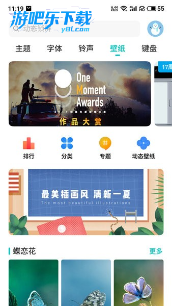 进入主题美化 > 主题,浏览推荐或分类主题